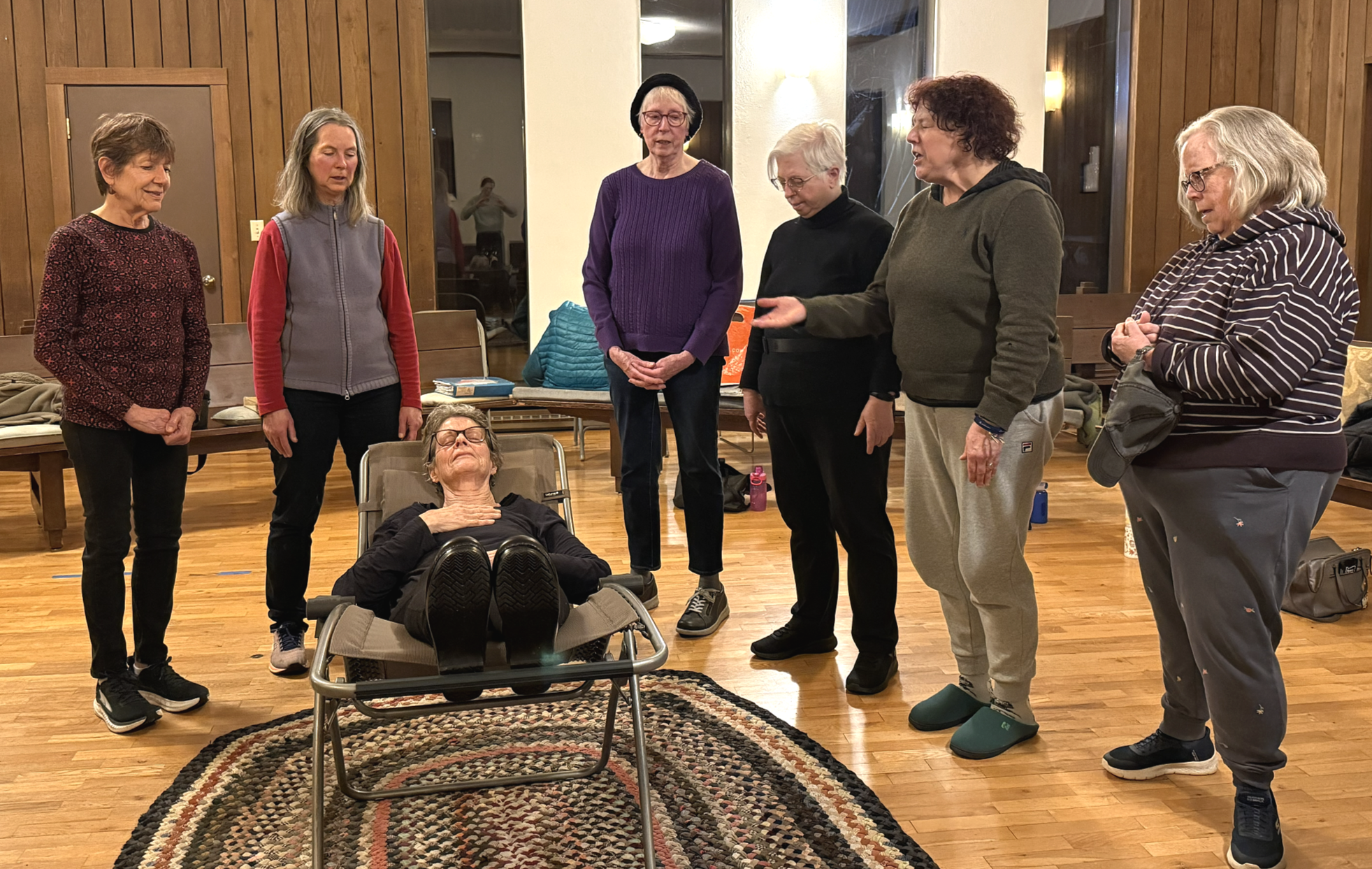 Seeing a full rehearsal offers a glimpse of how carefully that preparation happens. The singers stand in a circle and practice blending their voices so the music remains soft and balanced. Sometimes a member reclines in a chair in the center while the others sing to her - an exercise that helps the singers understand what the experience may feel like for the person receiving the music.